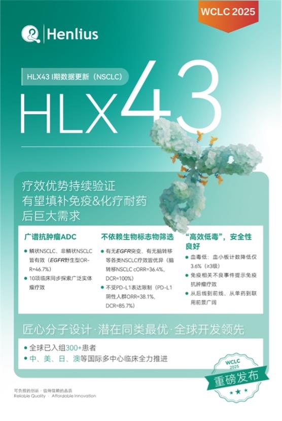 復宏漢霖PD-L1 ADC HLX43的I期臨床更新數據作為肺癌前沿研究代表亮相