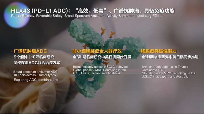今年以來,復星在創新藥領域實現多點破局。HLX43是一款靶向PD-L1的抗體偶聯藥物(ADC),正在中、美、日、澳等國家開展非小細胞肺癌、胸腺癌等實體瘤的臨床研究。目前,全球範圍內尚無PD-L1 ADC獲批上市,HLX43有潛力成為高效、安全的「廣譜抗癌藥」。此外,在小分子創新藥方面,復星自研的靶向藥物復邁寧獲批兩項罕見病適應症,填補了相關罕見病腫瘤領域的治療空白。