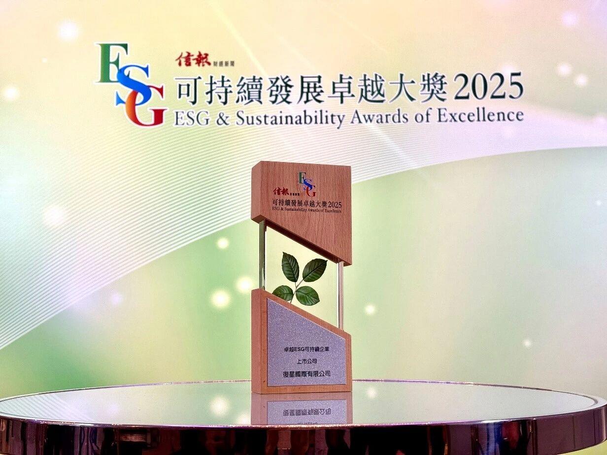 2025年11月13日,香港首份專業中文財經報章《信報》舉辦「2025 ESG及可持續發展卓越大獎」頒獎典禮。復星國際榮獲《信報》頒發的「卓越ESG可持續企業獎」,表彰公司在環境、社會、治理及可持續發展方面的表現獲市場認可。